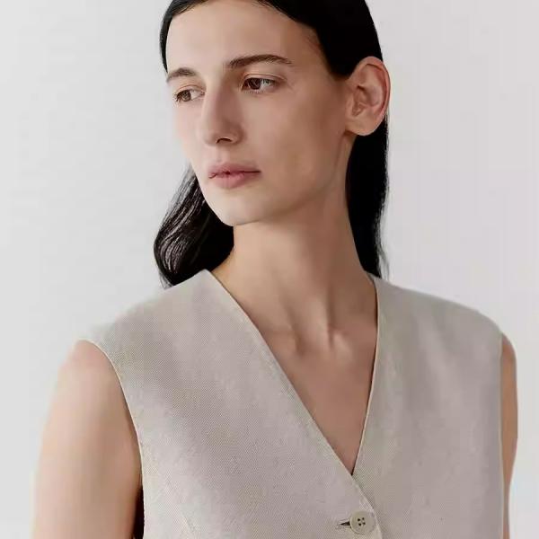 Spring linen twill vest in a light hue for men